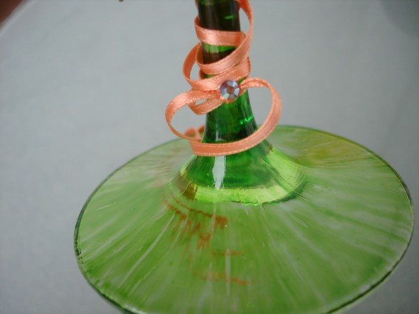 Ручная роспись. Краски по стеклу, стразы swarowsky, шелковая тесьма.